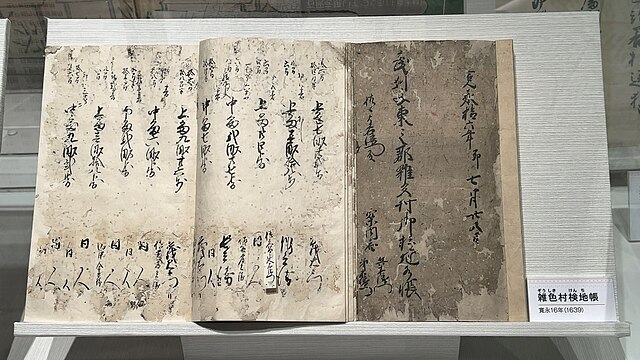1590 年代には、土地調査の実施に多大な努力が払われました。太閤検地 (たいこうけんち) は、この時代の有名な土地測量です。新しい測定単位 (チェーン) が採用されました。個々の区画は注意深く測定され、その所有者が特定されました。将軍の国家機構が機能するには税金が必要でした。これらの土地調査は、日本各地から税金を徴収するための重要な手段でした。