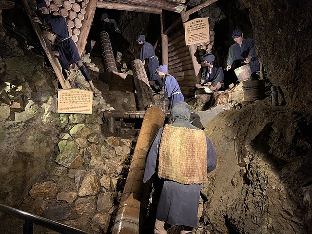 明治維新により生産に若干の変化があった。日本で採掘が数百年も続くことができた理由の一つは、機械化のレベルが低かったことにあります。簡単に言うと、作業員は少量を抽出するのに長い時間がかかりました。もし採掘が徳川時代ではなく明治時代に始まっていたら、この産業の寿命はもっと短かったでしょう。
