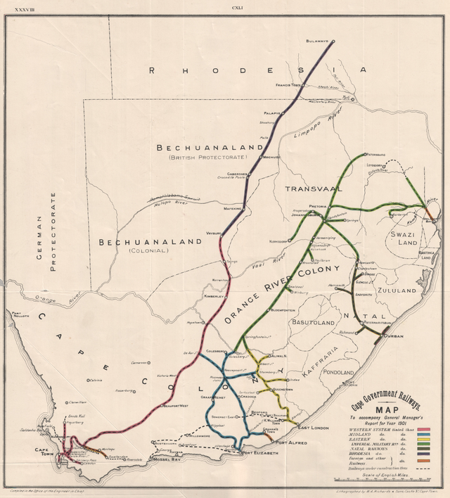 The railway system in Southern Africa was dominated by South Africa. Many of the railways traveled on a north-south axis. This facilitated penetration into states to the north. In this way, railways provided easy access to the agricultural and mineral wealth that lay beyond South Africa’s borders. Even if the resources were owned by neighbouring countries, South Africa could benefit financially from transit revenue if they were shipped out of South African ports. These railways also allowed for the fast deployment of South African troops at times of conflict with northern neighbours.
