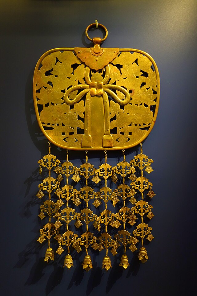 80 – 華鬘 – keman – Buddhist decoration engraved with various motifs, often made from gilt copper (e.g. for adorning the inner shrine of a temple)