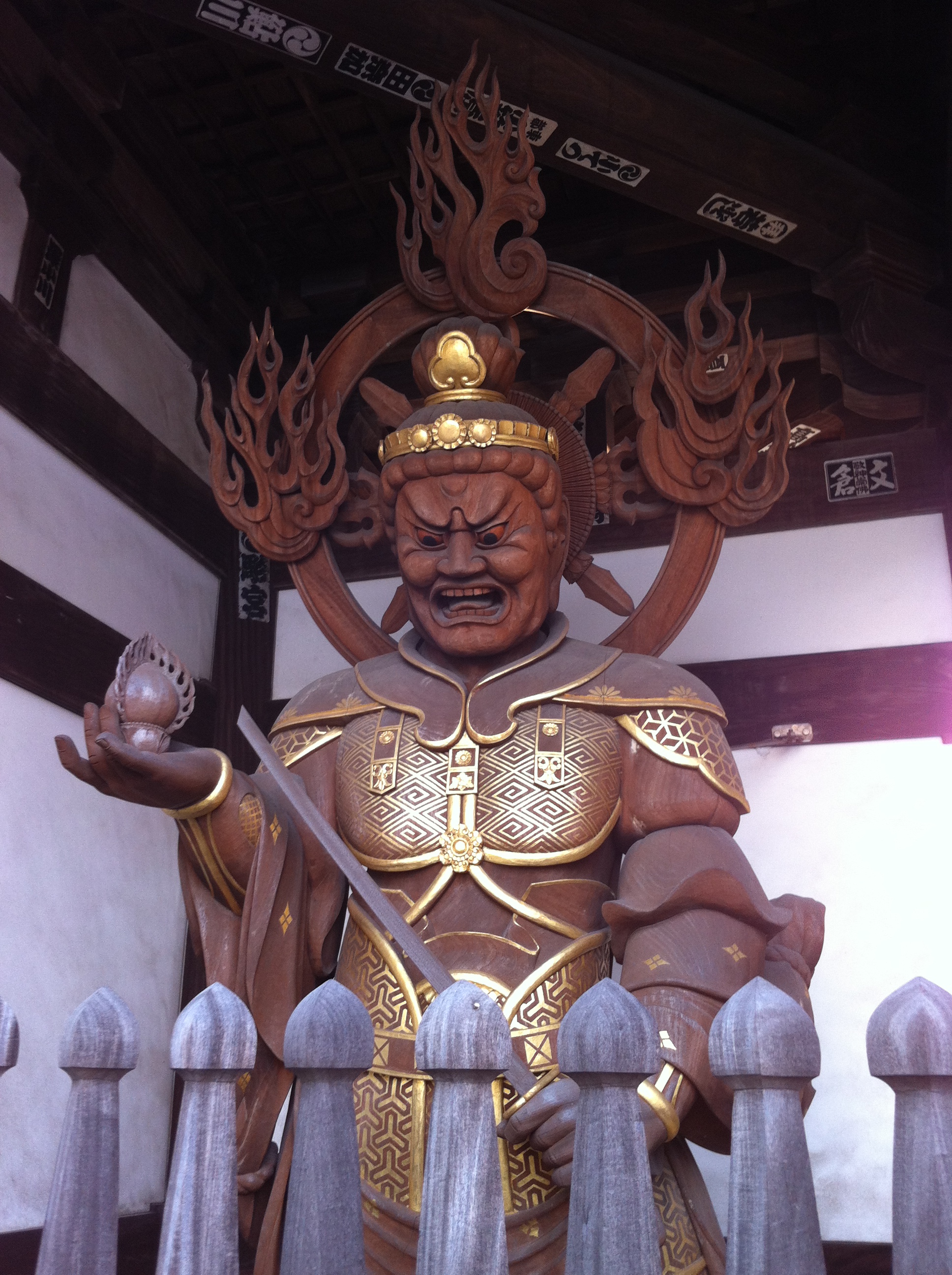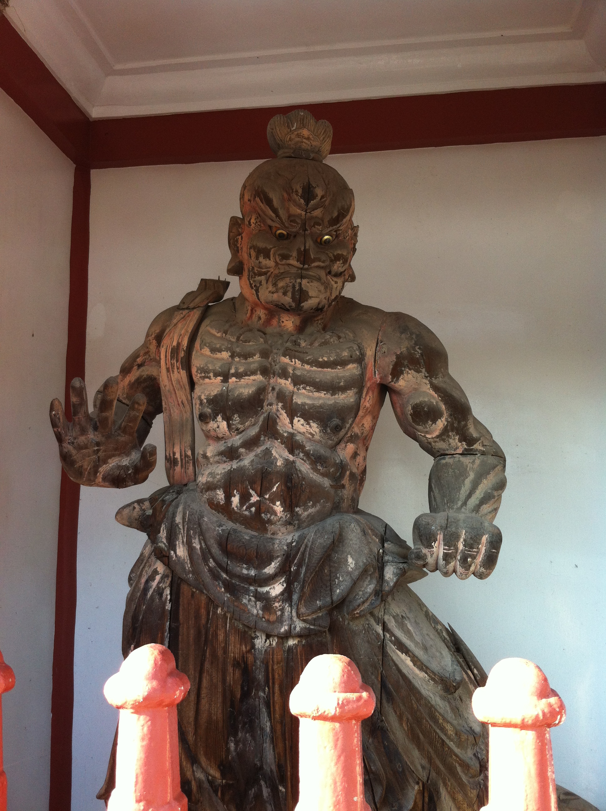Niō guardians (仁王), also known as Kongōrikishi (金剛力士) in Japanese, are fearsome, muscular statues often placed at the entrance of Buddhist temples in Japan.